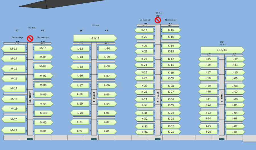 For 40' slips - length 43', width 14'